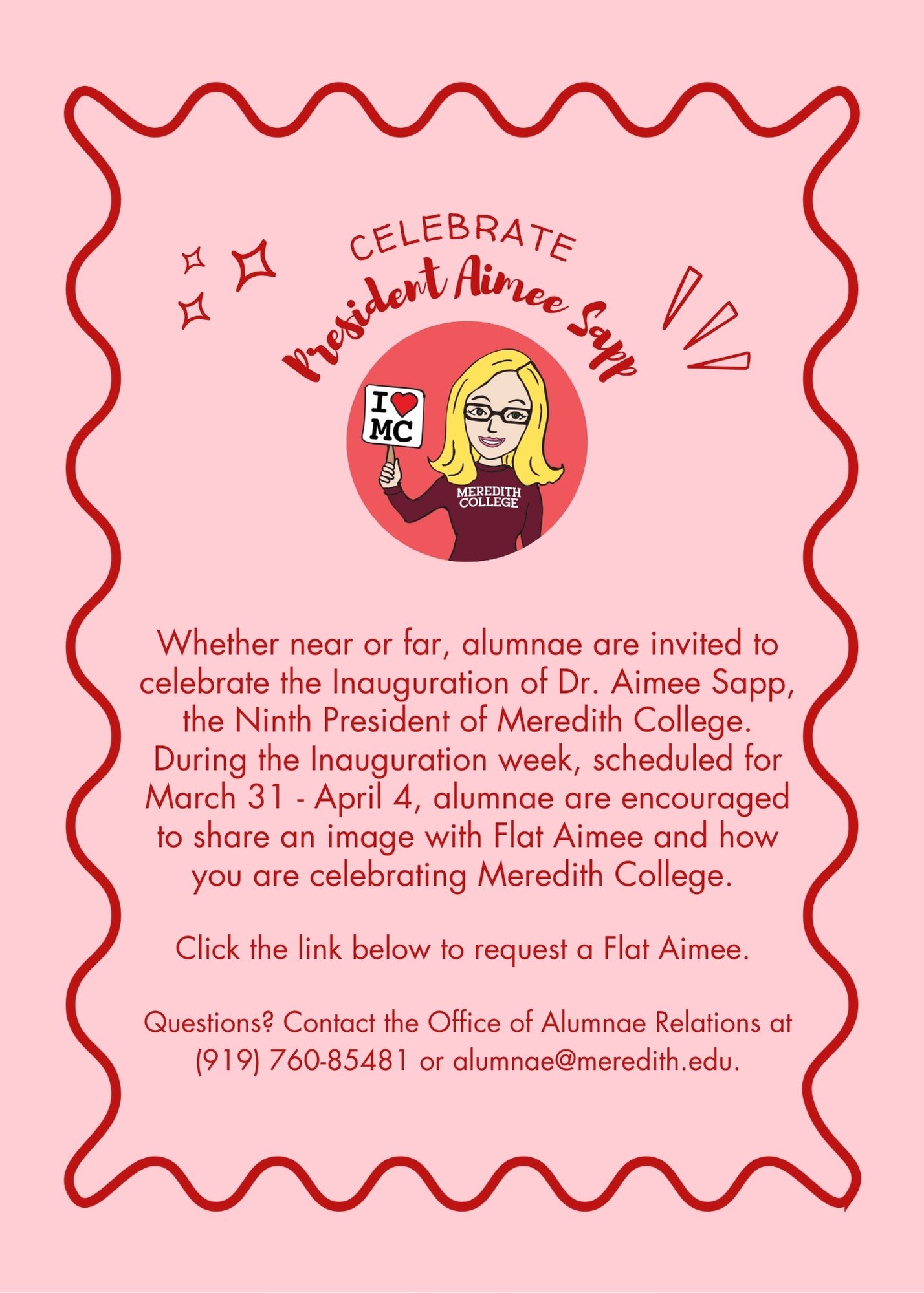 Join us in celebrating the Inauguration of Dr. Aimee Sapp, the Ninth President of Meredith College.